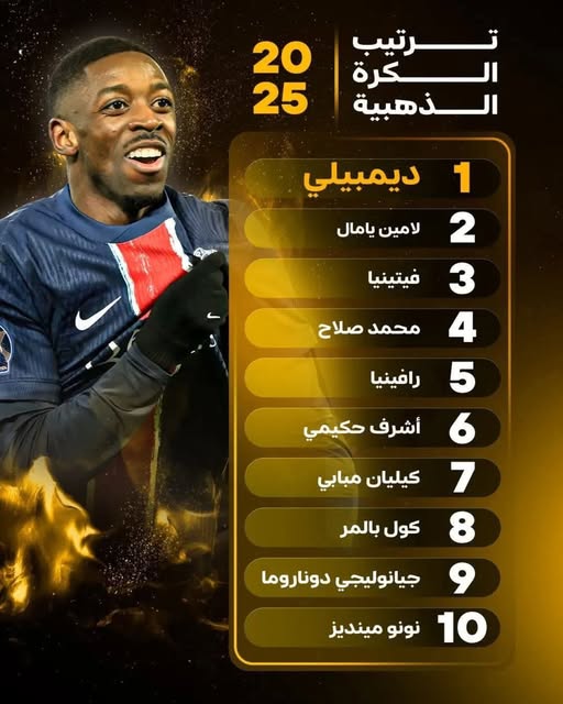 تُوّج المهاجم الفرنسي عثمان ديمبيليه بجائزة الكرة الذهبية لعام 2025، التي تمنحها مجلة فرانس فوتبول سنويًا لأفضل لاعب في العالم، بعد دوره البارز في قيادة باريس سان جرمان للتتويج بالثلاثية المحلية والفوز بدوري أبطال أوروبا لأول مرة في تاريخه وفي حفل أقيم بمسرح شاتوليه في باريس، تفوّق ديمبيليه على نجم برشلونة الشاب لامين جمال، ليصبح سادس لاعب فرنسي يحصد هذه الجائزة، والثامن في رصيد الكرة الفرنسية